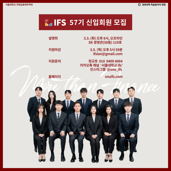2026년 봄학기, International Finance Society IFS와 함께 할 57기 신입회원을 찾습니다!
